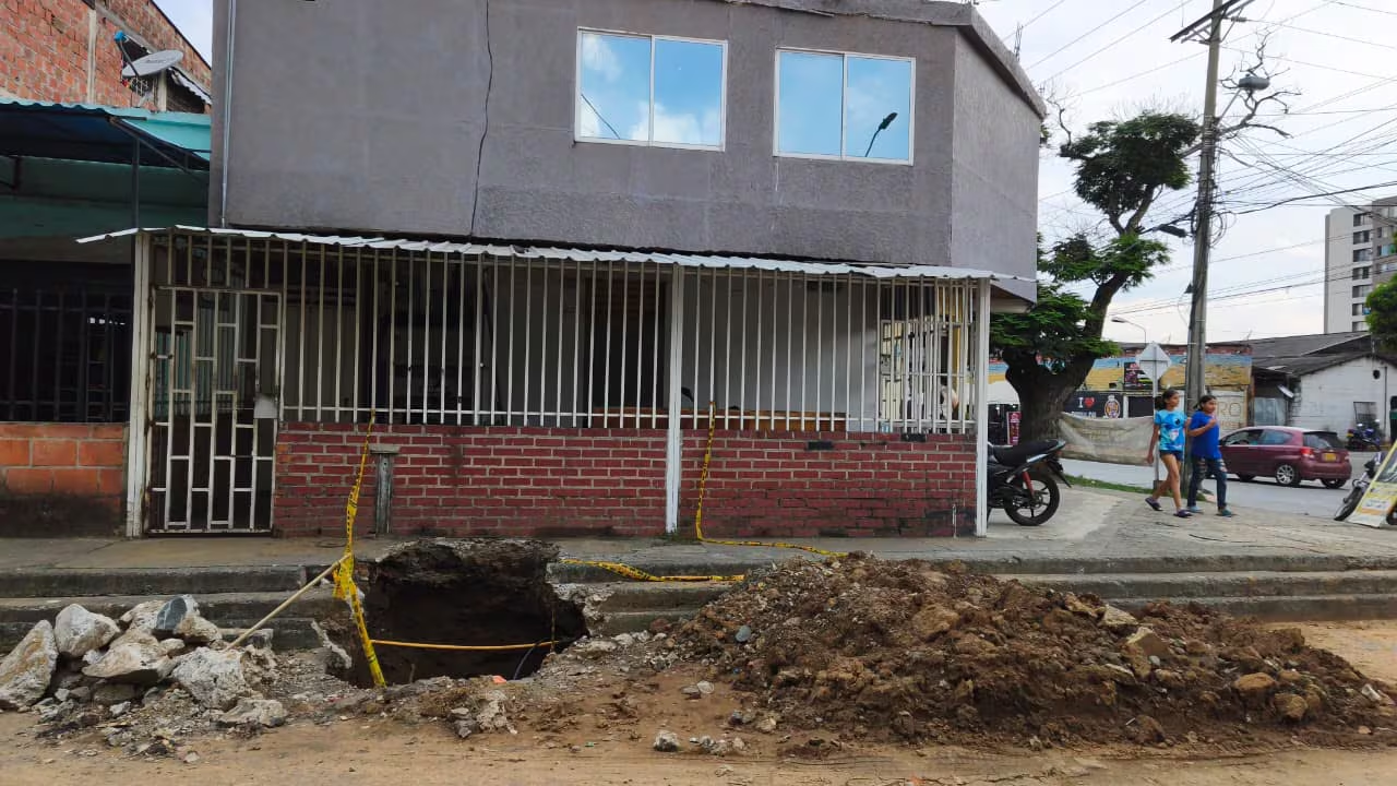 La empresa municipal atendió una avería en la red de acueducto que dejó un gran cráter sin señalizar durante semanas;…