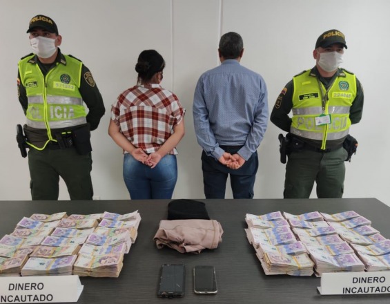 La pareja capturada y el dinero incautados son dejados a disposición de la autoridad competente por el presunto delito de lavados de activos