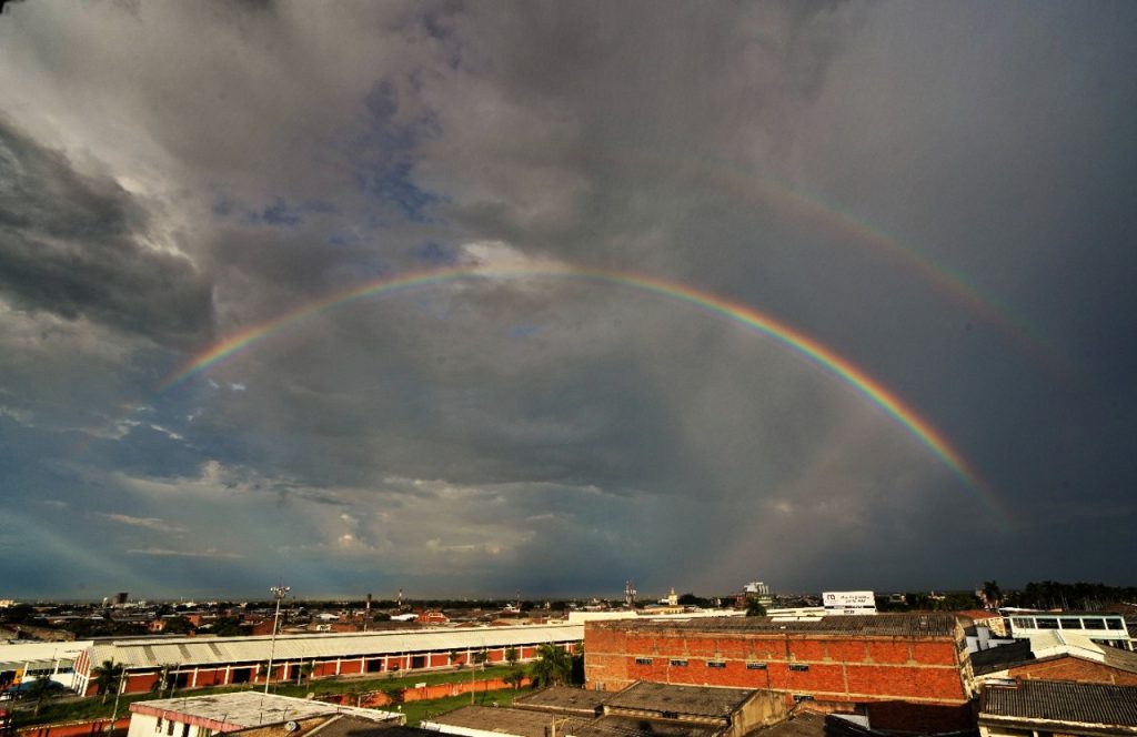 Pero la naturaleza, no conforme con mostrarnos su fuerza con la lluvia, después de este vendaval nos adornó el atardecer con un bello arcoiris que se robó la mirada de todos los caleños.