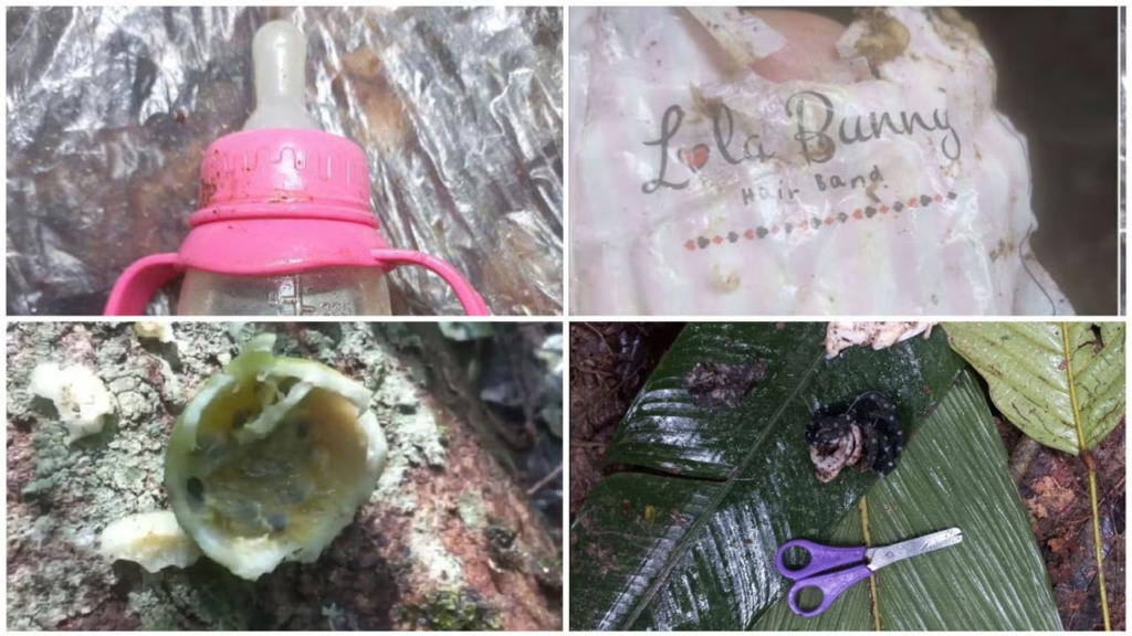 El hallazgo de unas huellas, unas frutas comidas, un cambuche y un tetero vacío al que le consumieron su contenido, son las pruebas que mueven a las autoridades a seguir buscando a los cuatro niños que aún permanecen desaparecidos después de que la avioneta en la que viajaban se accidentara en San José del Guaviare.
