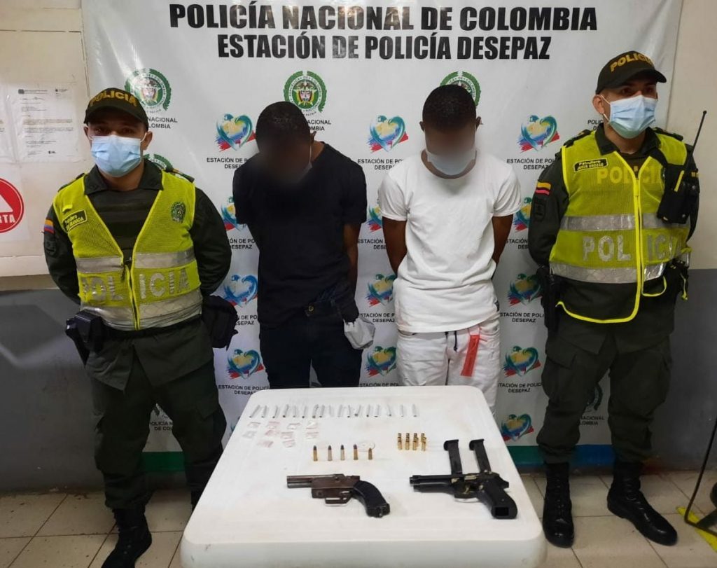 En la misma comuna de la ciudad, la Policía capturó a dos hombres que se encontraban violando la medida de toque de queda y al inspeccionarlos tendrían droga y armas.