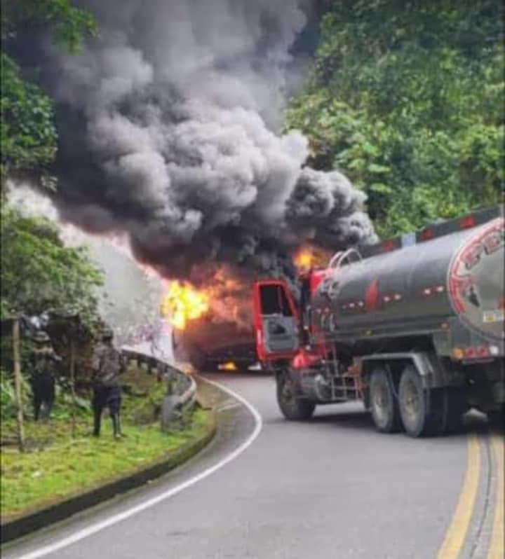 🚨ATENCIÓN🚨 EN LA VÍA TADÓ-PEREIRA QUEMAN OTROS BUSES DE LA EMPRESA FLOTA OCCIDENTAL