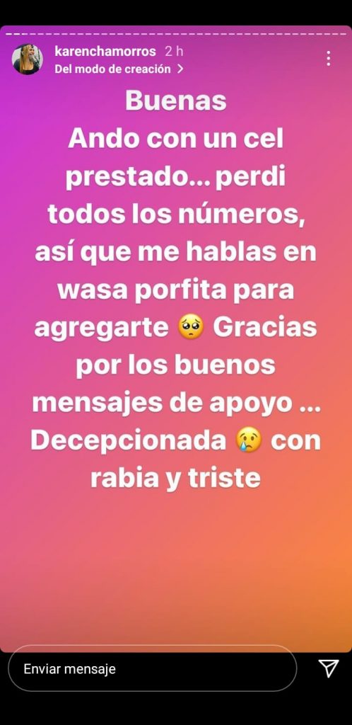 En varias historias que compartió en su instgram, Karen contó como una actividad de entrega de ayudas en el barrio Invicali casi termina en tragedia, debido a dos conocidos delincuentes del sector que la atracaron.