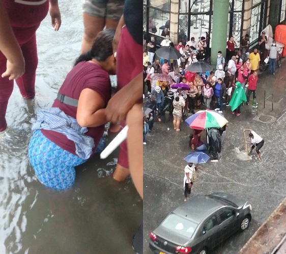 La madre intentó pasar la calle cuando la alcantarilla en mal estado la atrapó. Durante 15 minutos ella estuvo aprisionada en medio del fuerte aguacero. Su hija de 8 años también cayó, pero alcanzó a sacar el pie.