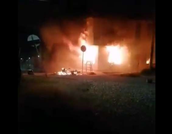 #ATENCIÓN 📣 #EstaNoche | #Cajibío | #Cauca 🆘🇨🇴#ULTIMAHORA Manifestantes queman la sede de la Alcaldía de Cajibío en rechazo al asesinato de Huver Samir Camayo en ese municipio presuntamente a manos de la policía en protestas.