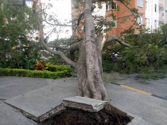 El primer hecho se presentó en la Calle 53 con Carrera 1, en el barrio Torres de Comfandi. Un árbol cayó sobre un vehículo, dejando daños materiales.