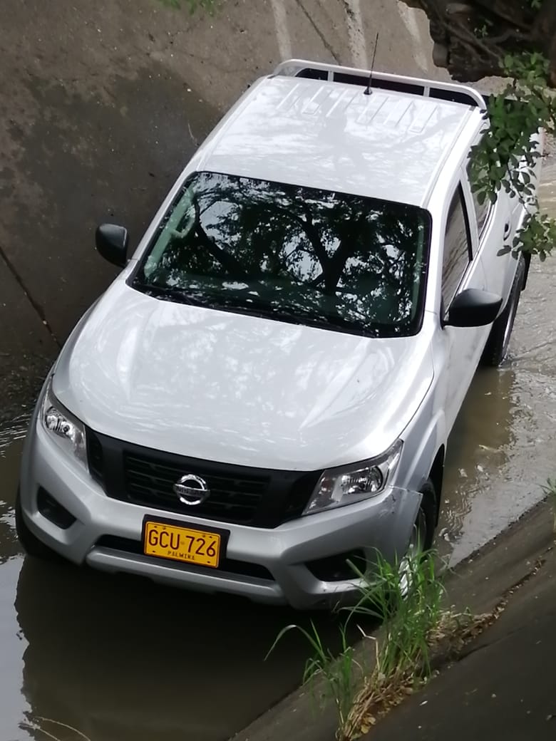 El accidente de tránsito se presentó en la Carrera 39 con Calle 14 del barrio El Guabal, en donde un conductor de una camioneta gris de marca Nissan de placa GCU-726, perdió el control y terminó en el canal de aguas lluvias.