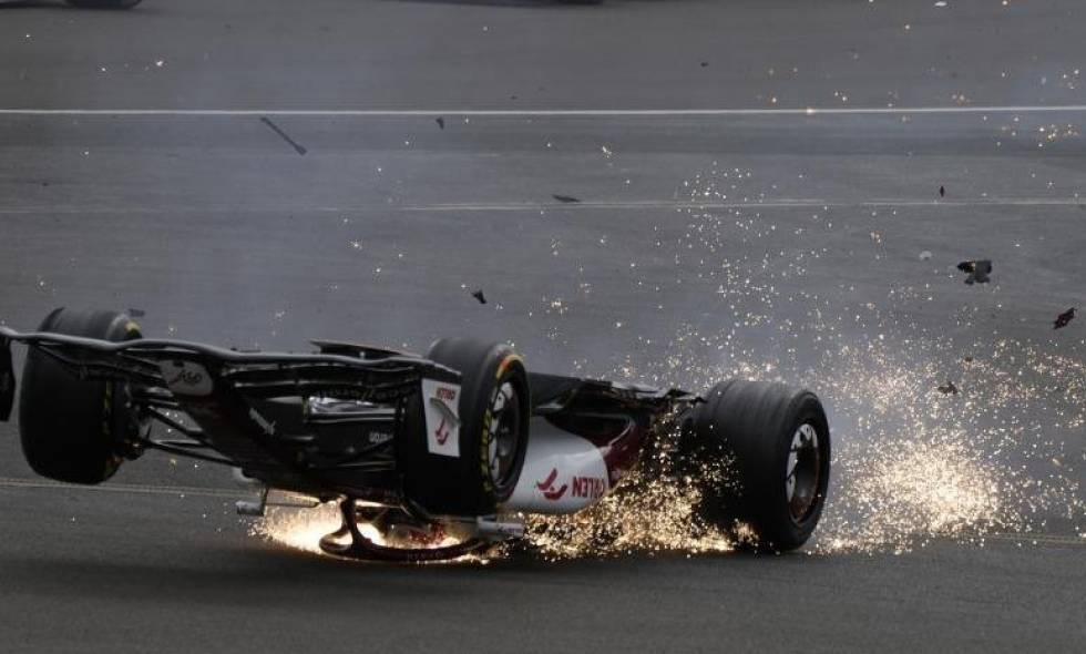 Transcurría la primera vuelta de la competencia cuando Zhou terminó de cabeza con su auto tras chocar con el Mercedes de George Russell lo que de inmediato provocó la bandera roja.