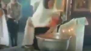 El vídeo muestra como Fotiy Necheporenko, a cargo de la ceremonia bautismal, agarra al niño de un año quién está desnudo y termina sumergiéndolo con mucha rudeza a una pileta de agua bendita.