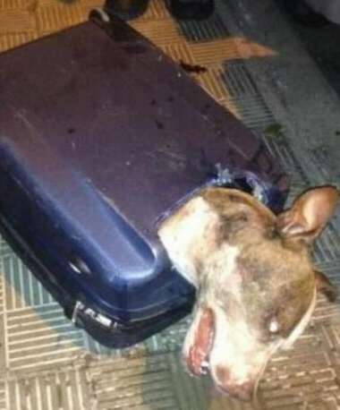 La perra se salvó porque unos vecinos la escucharon gruñir dentro del contenedor y le abrieron un agujero en la maleta para que pudiera sacar la cabeza.