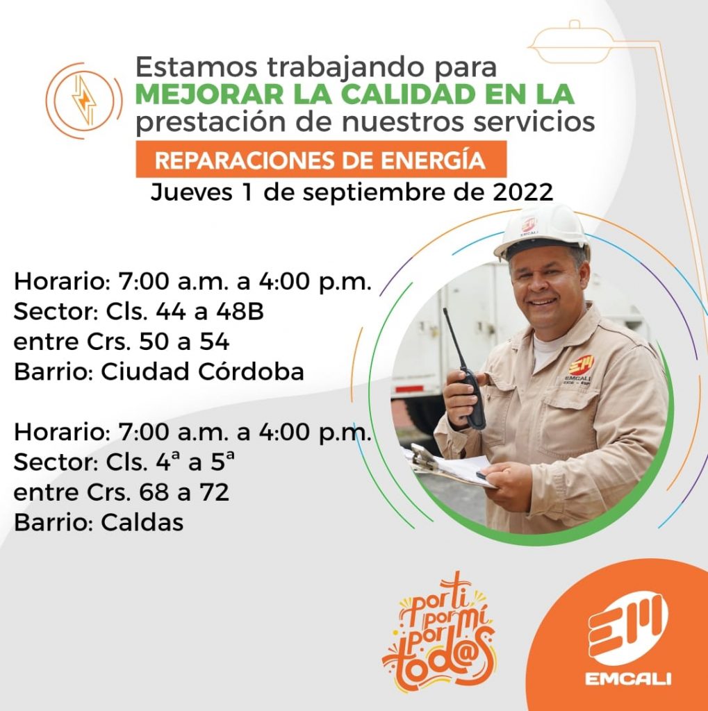 Cabe mencionar que Emcali también va a hacer reparaciones de energía en los sectores de Ciudad Córdoba y Caldas.
