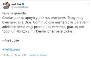 En marzo de 2017 le diagnosticaron cáncer de páncreas, y en junio de este año José José había hecho saber a sus seguidores que continuaba con sus "terapias para salir adelante".