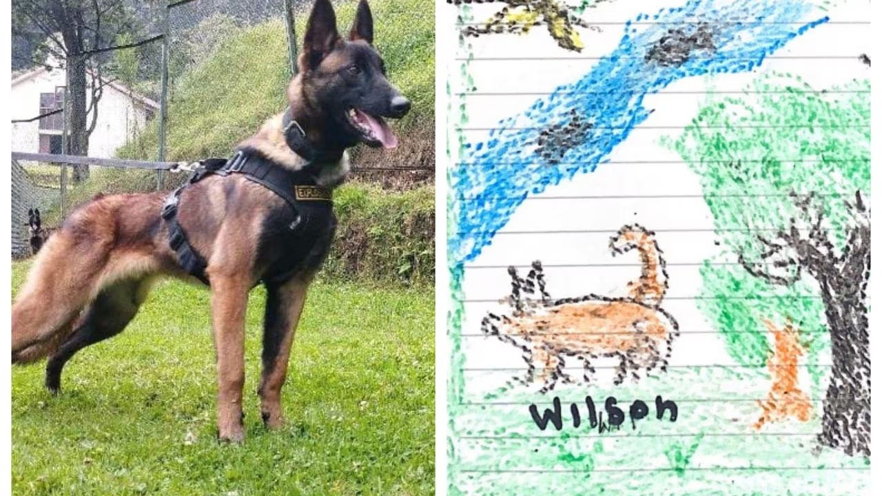 El dibujo, realizado con crayones, tiene como objetivo expresar su afecto hacia Wilson, quien actualmente se encuentra extraviado en la densa selva. Aunque el destinatario del dibujo es el comandante, su verdadero propósito es rendir homenaje al guía canino que los acompañó en momentos difíciles y al que las Fuerzas Militares siguen buscando.