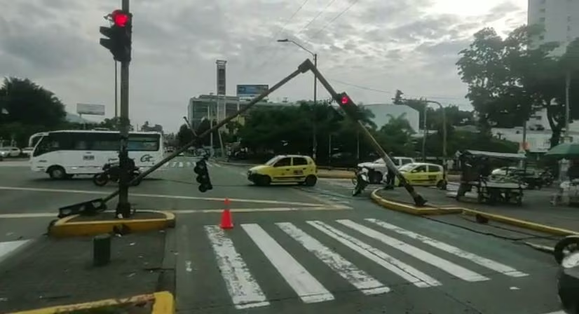 Un tractocamión perteneciente al circo Gasca al parecer tumbó un semáforo y la red eléctrica en la Calle 5 con Carrera 39, en Cali. Las autoridades de movilidad buscan al vehículo para imponer el respectivo comparendo por transitar por un lugar indebido.
