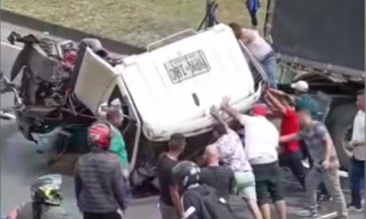 En el video se logra evidenciar como varias personas trataban de sujetar la cabina, buscando rescatar al conductor de la tractomula.