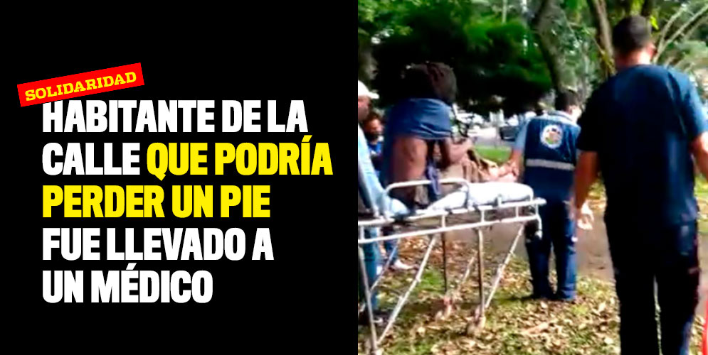 Gracias al llamado de los vecinos del sector, lograron que el Sistema de Atención al Habitante de Calle, recogiera a este ser humano, que tiene un grave problema en su pie, y lo llevaran en ambulancia hasta un centro médico.