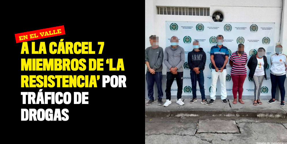Siete presuntos integrantes del grupo delictivo ‘La Resistencia’, dedicado a la distribución de sustancias estupefacientes, fueron enviados a prisión en el Valle del Cauca.
