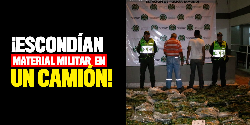 La captura se llevó a cabo en el kilómetro 1 de la vía que del municipio de Jamundí conduce al corregimiento Potrerito. En un vehículo de placas MAI 245 que fue objeto de control, la Policía halló en la parte trasera 15 costales blancos que contenían 130 morrales de campaña pixelados con marcación del Ejército Nacional.