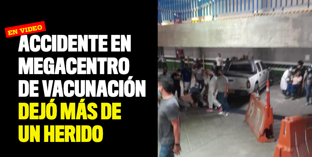 El siniestro vial se presentó en el megacentro de vacunación Jairo Varela ubicado al norte de la ciudad. Al parecer el vehículo sin control y a toda marcha habría bajado una rampa arrollando a tres personas.