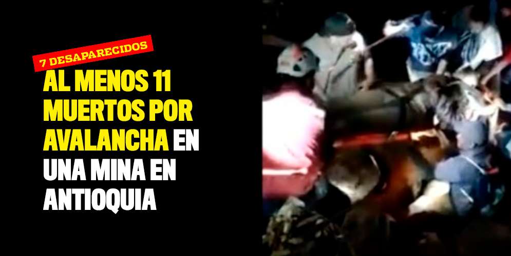 Al menos 11 personas murieron y otras siete están desaparecidas tras una avalancha que se produjo en una mina en el noroeste de Colombia, informaron el jueves las autoridades.