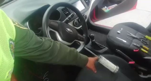En el mismo operativo se supo que los integrantes del taxi junto a otro hombre, acababan de hurtarse un vehículo Kia rojo, el cual fue requerido por los patrulleros para ser revisado, encontrado en su interior una pesa adaptada con una pinza en el siuche. El hombre, al notar la presencia de los uniformados, emprendió la huida pero fue interceptado unas cuadras más adelante.
