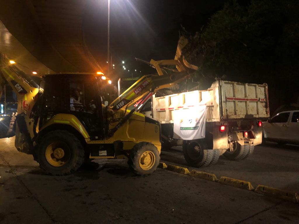 Emcali también ha participado desde la madrugada de este domingo con operarios y maquinaria pesada recorriendo las vías de la ciudad y recolectando basuras y escombros de paso.