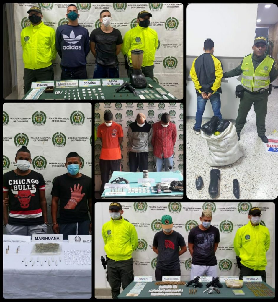 "Durante el operativo fueron realizadas 14 diligencias de registro y allanamiento en las que se incautaron cuatro armas de fuego; cuatro armas traumáticas, un proveedor, 41 cartuchos de diferentes calibres, grameras; máquinas para la elaboración de cigarrillos, dinero, drogas sintéticas; además 5742 dosis de estupefacientes entre marihuana, basuco y clorhidrato de cocaína", informó la Policía.