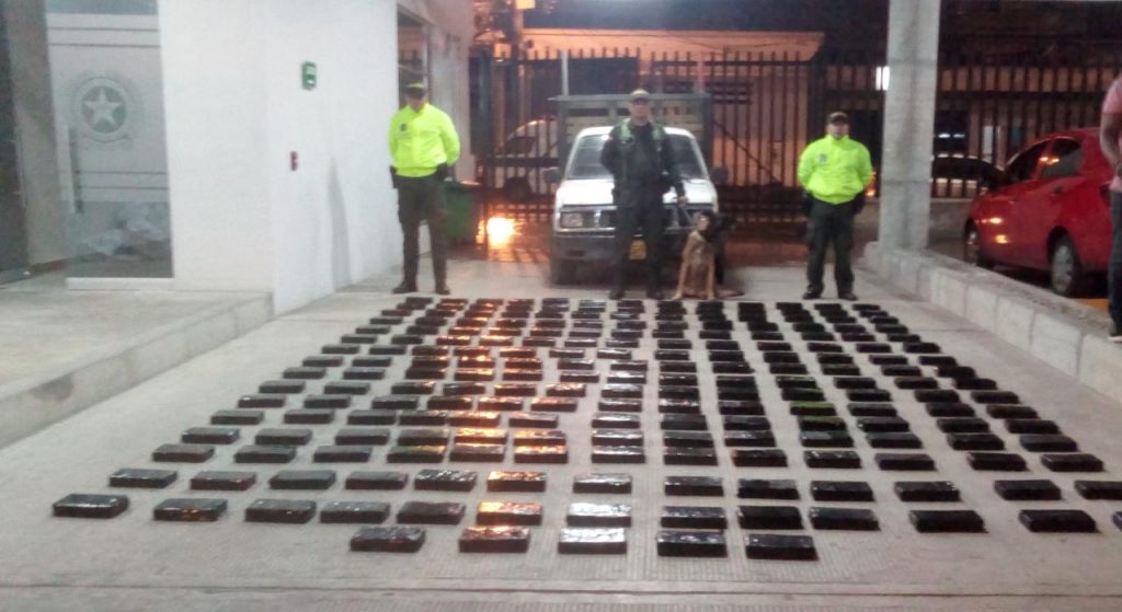 En medio del operativo de registro y control que se estableció en la zona, los policías iniciaron la revisión de un vehículo blanco tipo particular, y al interior del mismo, se logró el decomiso de la cocaína, con el personal técnico de la Policía y el apoyo del guía canino.
