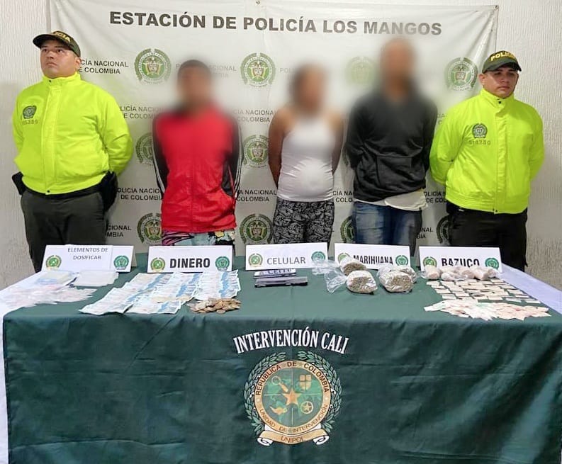 En labores de seguimiento y allanamiento se capturaron en flagrancia a una pareja y otro ciudadano dedicados al expendio de estupefacientes en el barrio San Marino, Nororiente de Cali.