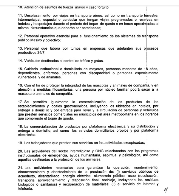 El decreto del nuevo toque de queda nocturno en Santiago de Cali que inicia este viernes, 26 de enero, contiene 21 excepciones.