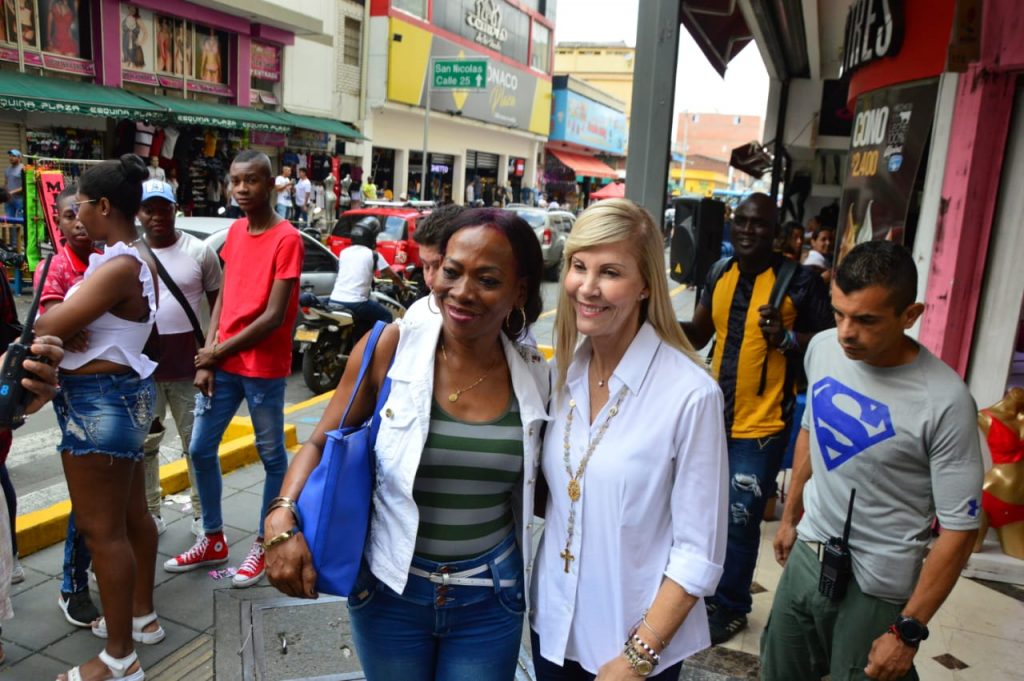 La gobernadora del Valle, Dilian Francisca Toro, visitó el centro de Cali para llevar un mensaje de respaldo a los caleños y al comercio, en ese sector de la ciudad.