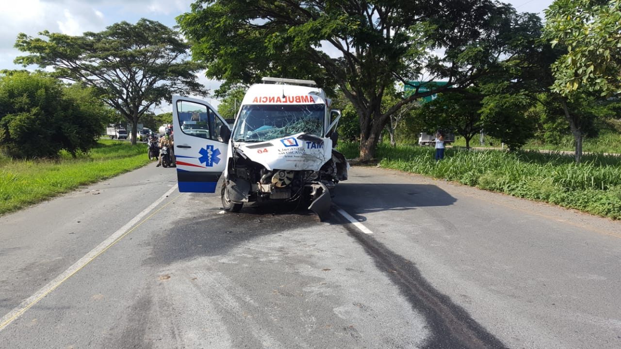 Dos personas que viajaban en una ambulancia resultaron heridas al registrarse la colisión de esta contra un árbol ubicado a un lado de la vía.