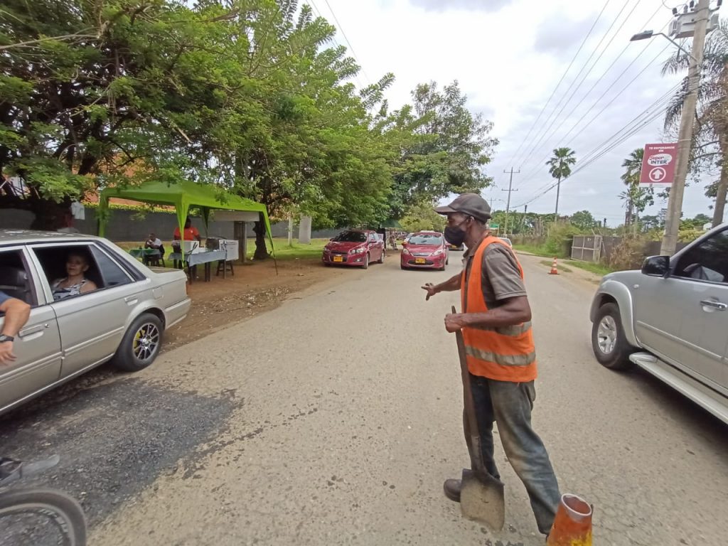 El ‘Tapahuecos’, como lo llaman en Jamundí, sale a las 5:00 am de su casa en La Balsa, donde vive con “un montón de familia”, entre quienes hay hijos, yernos, nietos… Cuando llega a Jamundí, reclama su pala, un galón de veinte litros y se ubica en uno de tantos puntos donde las vías están llenas de huecos. Ahí comienza su misión: tapar cada una de esas troneras que dan carros, pinchan llantas y causan accidentes en moto, algunas con resultados graves.