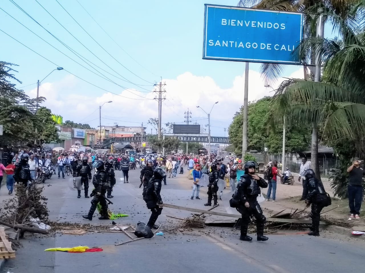 Esta mañana amaneció cerrado el puente de Juanchito cerrado, a esta hora, siendo las 9:00 de la mañana, el bloqueo se levantó debido a la llegada del Esmad a la zona para dispersar a los manifestantes.
