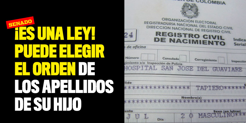 La ley precisa además que en caso que los padres no se pongan de acuerdo con el orden de los apellidos; se le asignarán en un sorteo. Este se realizará por la Registraduría Nacional.