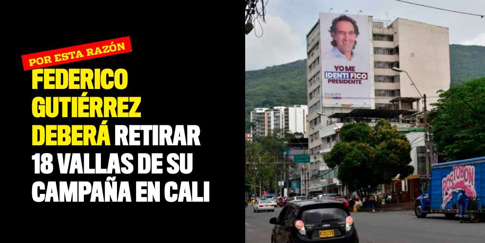 Tras la polémica que se generó entre el alcalde Jorge Iván Ospina, y el candidato presidencial, Federico Gutiérrez, por este último violar la norma de propaganda electoral en Cali, la Subsecretaría de Inspección, Vigilancia y Control solicitó formalmente al aspirante a la Casa de Nariño retirar 18 de las 26 vallas políticas que instaló en la ciudad.