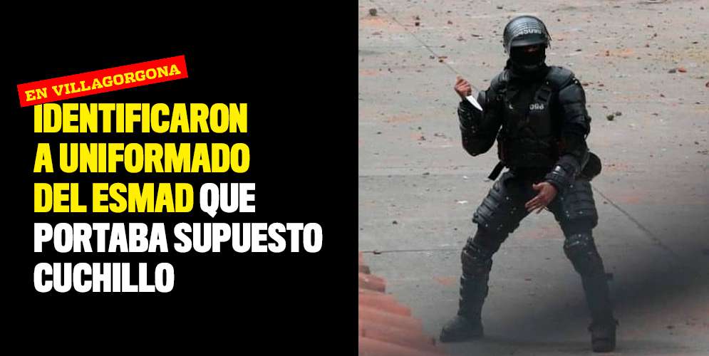 En la tarde del pasado 8 de junio, habitantes de Villagorgona denunciaron en redes que un integrante del Esmad portaba un elemento cortopunzante en medio de enfrentamientos con encapuchados.