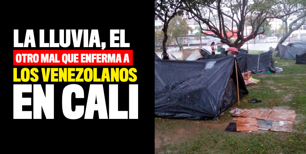 Un grupo de migrantes venezolanos, que se mantienen asentados en el Parque de las Banderas, están sufriendo entre muchas cosas, por los estragos de los fuertes aguaceros en Cali.