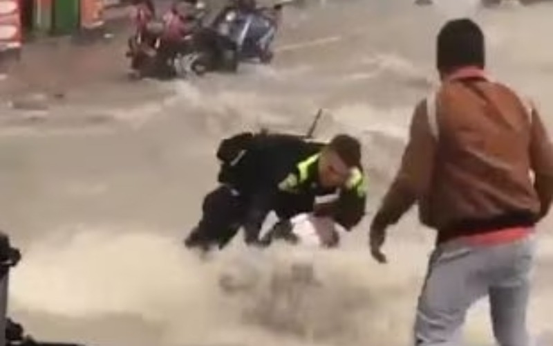 Una heroica acción policial se viralizó en redes sociales. Se trata de un uniformado que no lo pensó dos veces y decidió salvar la vida de una mujer que estaba siendo arrastrada por una corriente de agua.