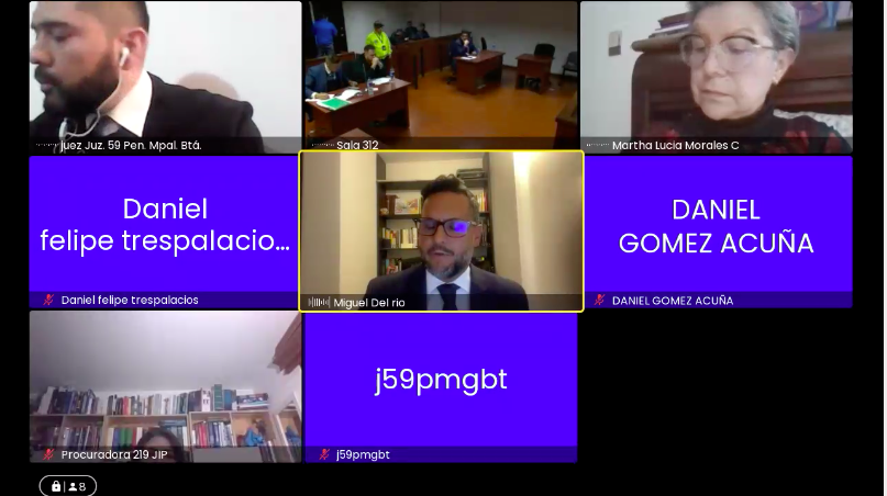 “Una audiencia muy compleja porque necesitábamos el acompañamiento de un traductor, la justicia colombiana exige el acompañamiento simultáneo de un traductor mientras se desarrolla la diligencia y eso entorpeció un poco el ejercicio natural de la administración de justicia, un poco de la precariedad del sistema judicial”, explicó el abogado de víctimas de este caso, Miguel Ángel del Río, a través de sus redes sociales.