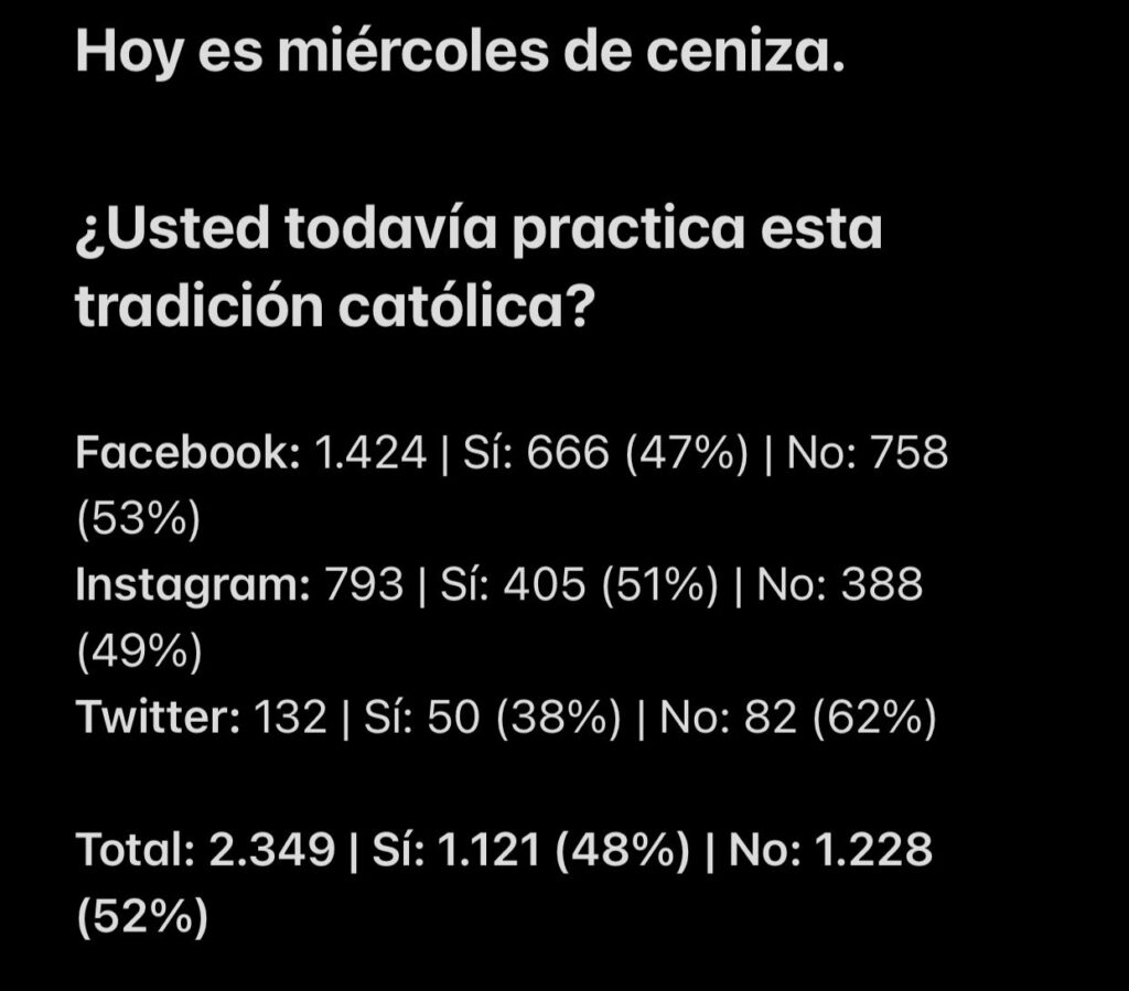 A través de las redes sociales de Q’hubo: Facebook, Instagram y Twitter, les preguntamos a los caleños si aún practican la tradición católica de la imposición de la ceniza.