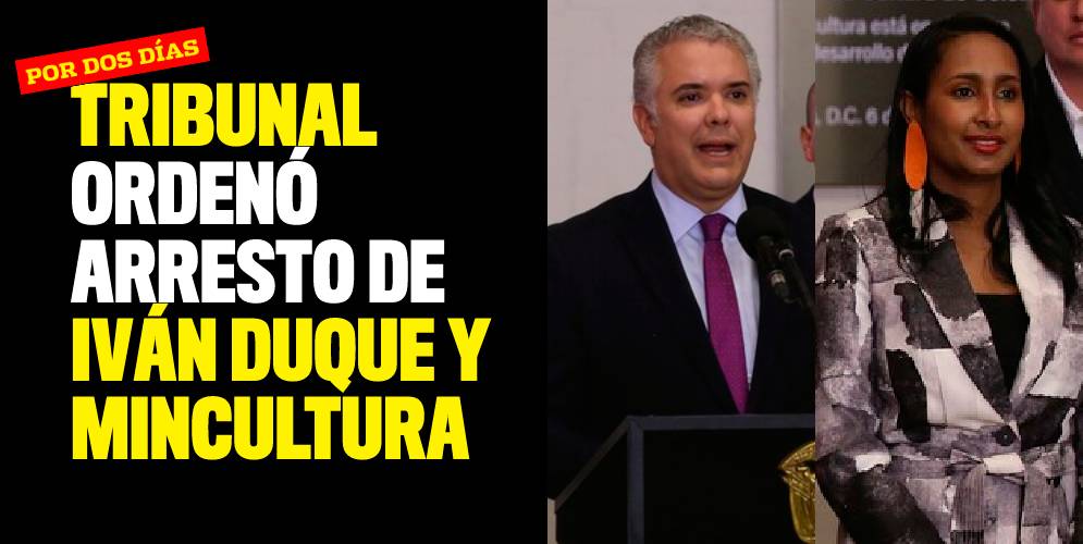 Este sábado se conoció que Tribunal Administrativo del Magdalena emitió una orden de arresto por dos días contra el presidente Iván Duque y la ministra de Cultura, Angélica Mayolo. En su defecto, ambos deberían cancelar una multa equivalente al valor de dos salarios mínimos legales mensuales vigentes, debido al desacato de una tutela.