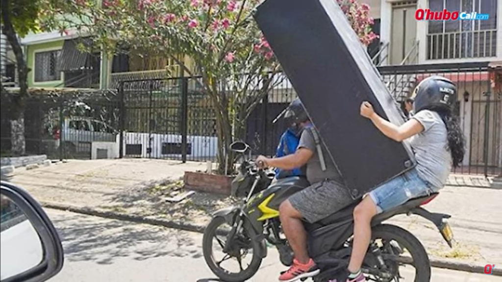 Aparte de la inseguridad y del desorden, en 'Cali pachanguero', perdón, perdón, en la 'sucursal del desorden', los caleños cogen sus motos como camión de trasteo y los motociclistas utilizan hasta sillas como cascos de seguridad.