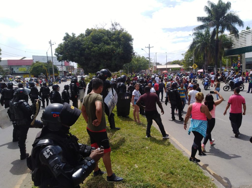 Desde tempranas horas de la mañana los transportadores informales bloquearon algunas vías de la ciudad, siendo la más afectada la Avenida Ciudad de Cali con Carrera 42B. A ese sector se desplazaron las autoridades para poner orden y la cosa se 'calentó'.