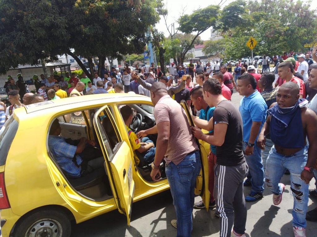 Dentro de lo que está pasando, se ve cómo los 'Piratas' están bajando a pasajeros de los taxis que transitan por Calle 54 con Carrera 42,del barrio Morichal de Comfandi, impidiendo que usen ese servicio.