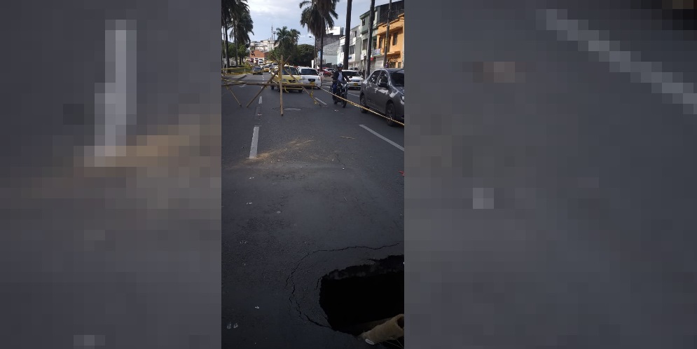 En un verdadero peligro se convirtió este cráter que se abrió en la Avenida Roosevelt con 24, al frente de la Biblioteca Departamental. Fue necesario encerrar dos carriles de la transitada vía para poder atender este huevo que sin duda, es un peligro para conductores y peatones.