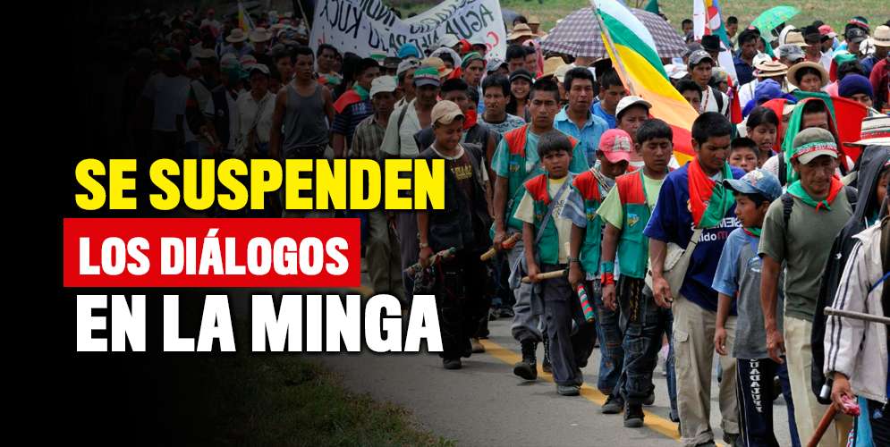 Los indígenas que iniciaron una Minga en forma de protesta el 11 de marzo, suspendieron el diálogo que mantienen con el Gobierno para levantar sus manifestaciones al considerar que carecen de garantías de "no estigmatización" o judicialización.