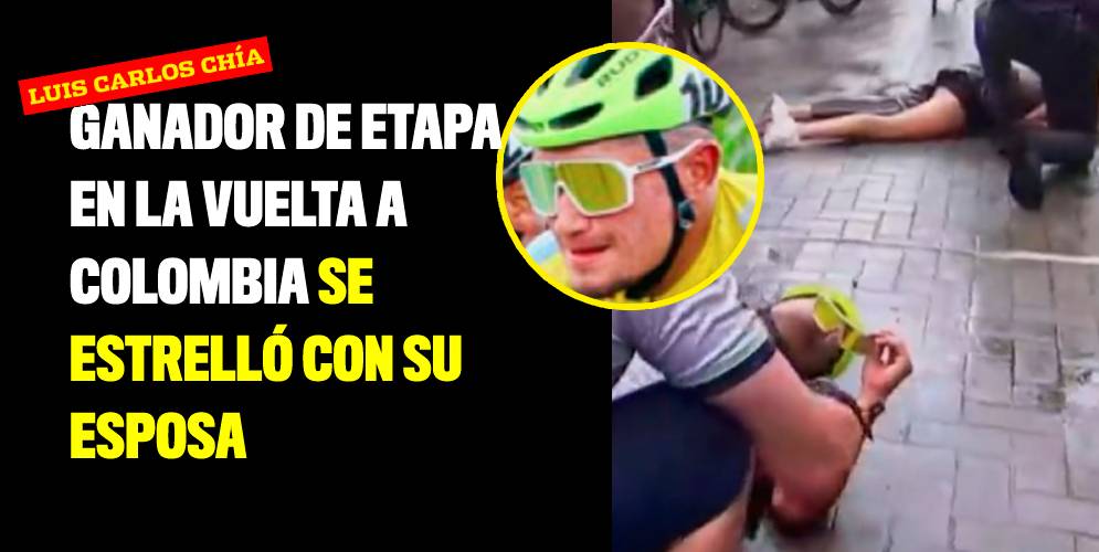 Por lo húmedo del terreno, debido a que la carrera se disputó bajo la lluvia, Chía no alcanzó a frenar a tiempo y chocó con su esposa Claudia Roncancio, quien tomaba unas fotos en el lugar de llegada.