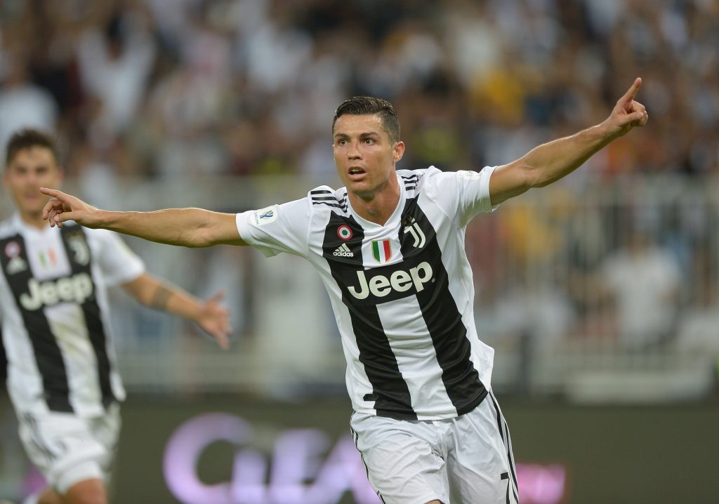 AS01. JEDDAH (ARABIA SAUDÍ), 16/01/2019.- El jugador del Juventus Cristiano Ronaldo celebra luego de anotar un gol hoy, durante el partido de la la Supercopa italiana entre Juventus FC y Milan hoy, en el estadio King Abdullah de Yeda (Arabia Saudí). El portugués Cristiano Ronaldo anotó el gol decisivo este miércoles para ganar 1-0 al Milan en la Supercopa italiana y conquistar su primer título como juventino, lo que dejó al argentino Gonzalo Higuaín, que empezó en el banquillo, sin venganza. EFE/Str