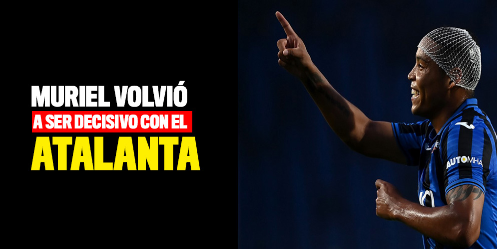 Muriel, quien ingresó en el minuto 46 por Mario Pasalic, con protección en la cabeza tras el accidente doméstico que sufrió hace unos días y terminó anotando el gol de la victoria del equipo de Bérgamo. Fue asistido por Duván Zapata y con pierna derecha marcó a los 63'.